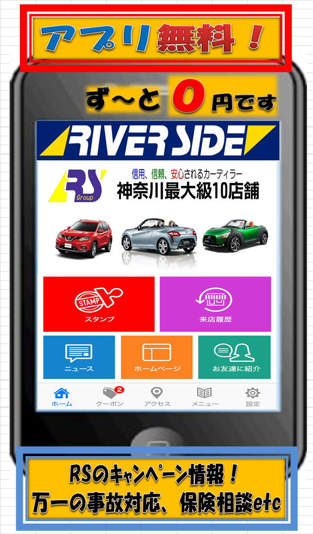 中古車 神奈川ならリバーサイド。中古車販売、中古車買取、車検、修理なども。
