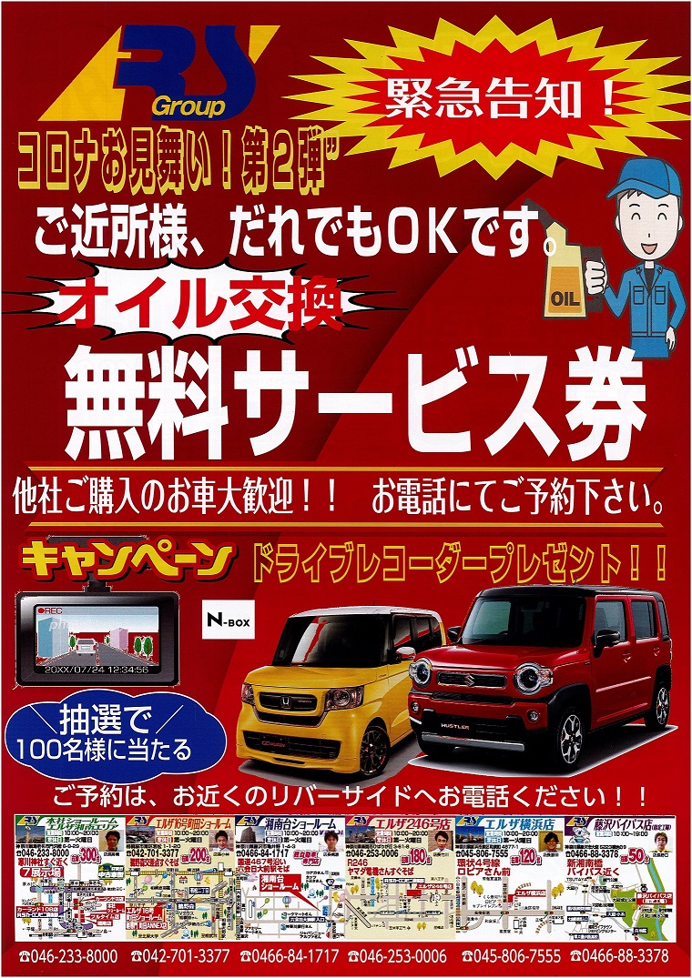 コロナお見舞い第2弾!コアラ会員でオイル交換無料! 『ドラレコプレゼント』抽選で100名様に当たる!