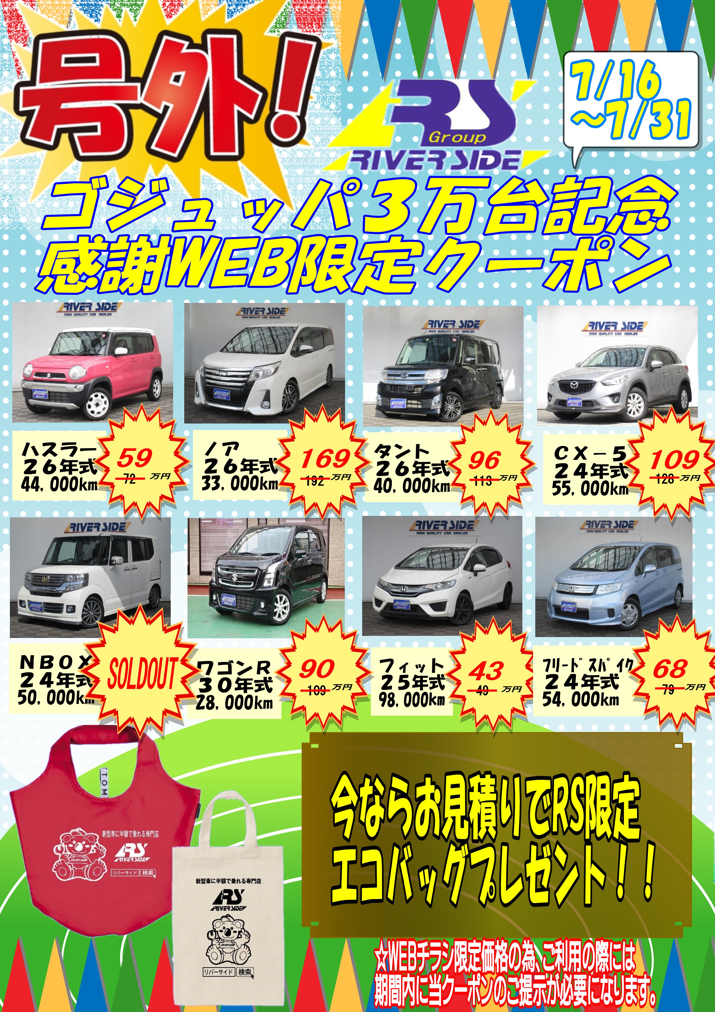 リバーサイドでは厳選在庫をプライスダウンで大放出! お得なこの機会に是非リバーサイドへお越し下さい!
