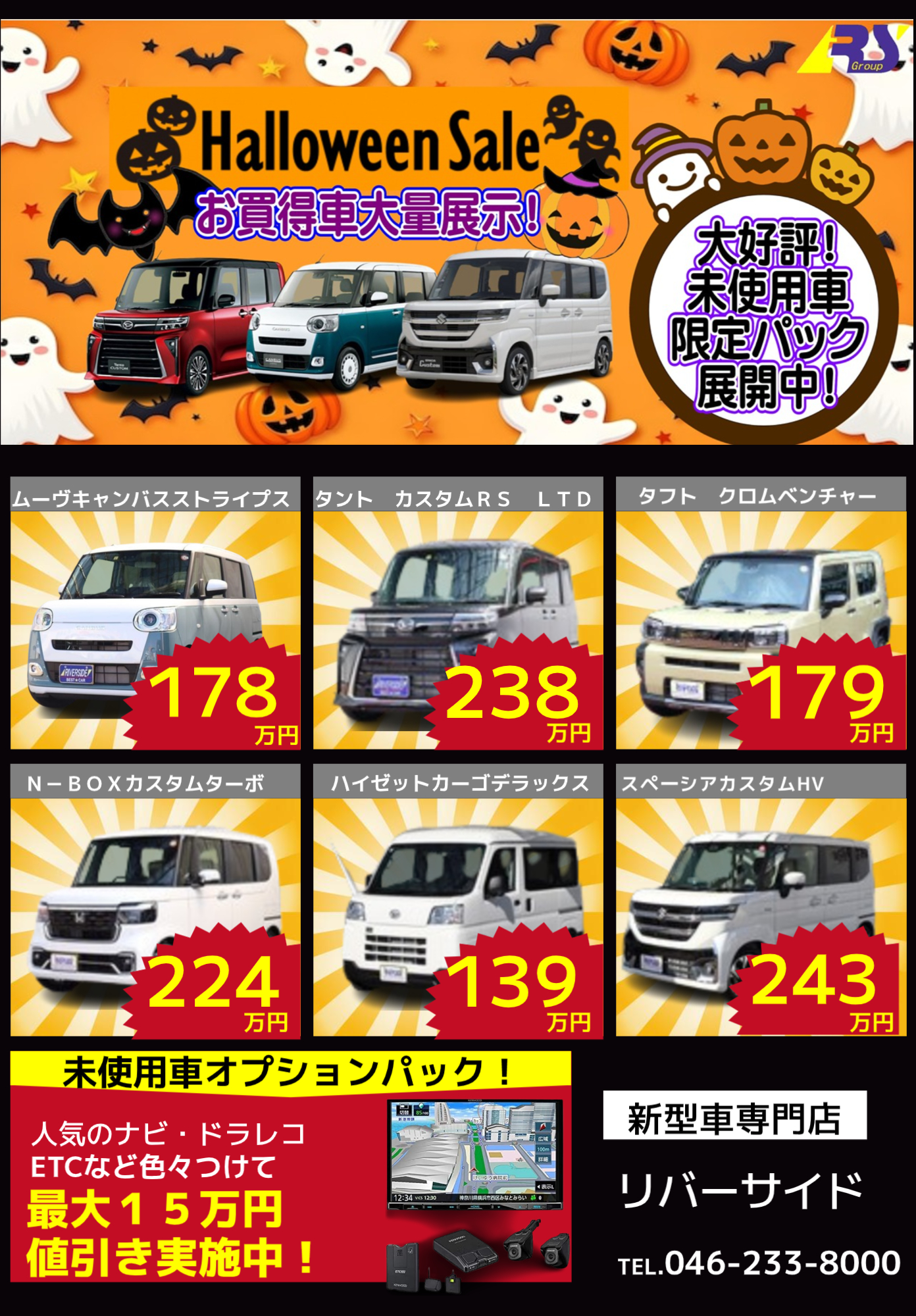 10月限定プライス! 新車・未使用車限定オプションパック ナビ・ETC・ドラレコ選んで15万円引!