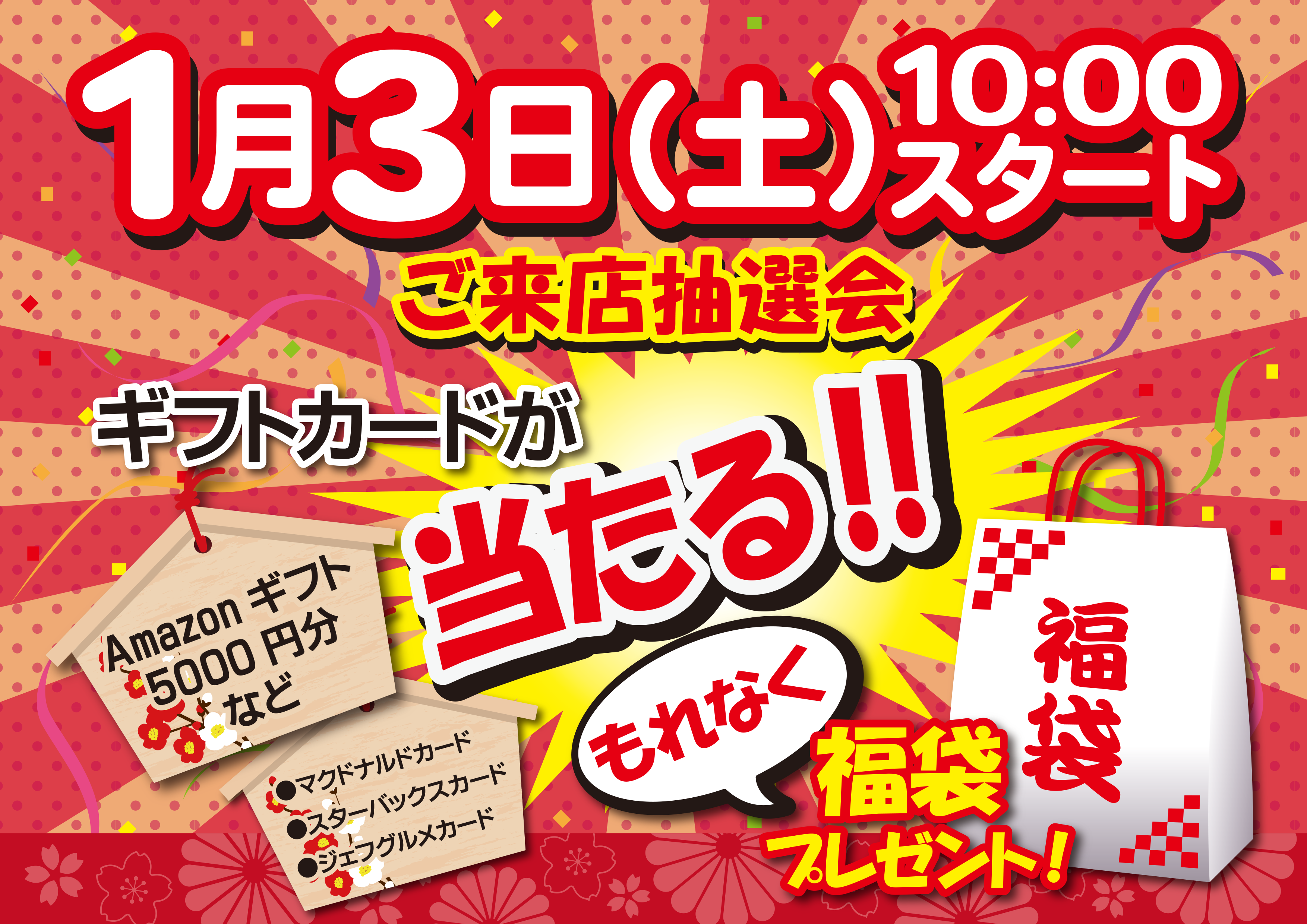 2026年リバーサイドの初売イベント開催中!もれなく福袋をプレゼント!お得な3つの特典もご用意!