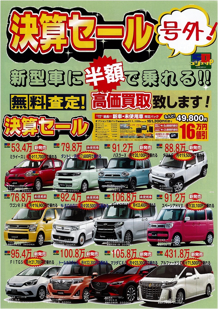 RS決算セール開催!期間限定プライスダウン車多数展示!DAMDフェアも同時開催!是非お越し下さい!