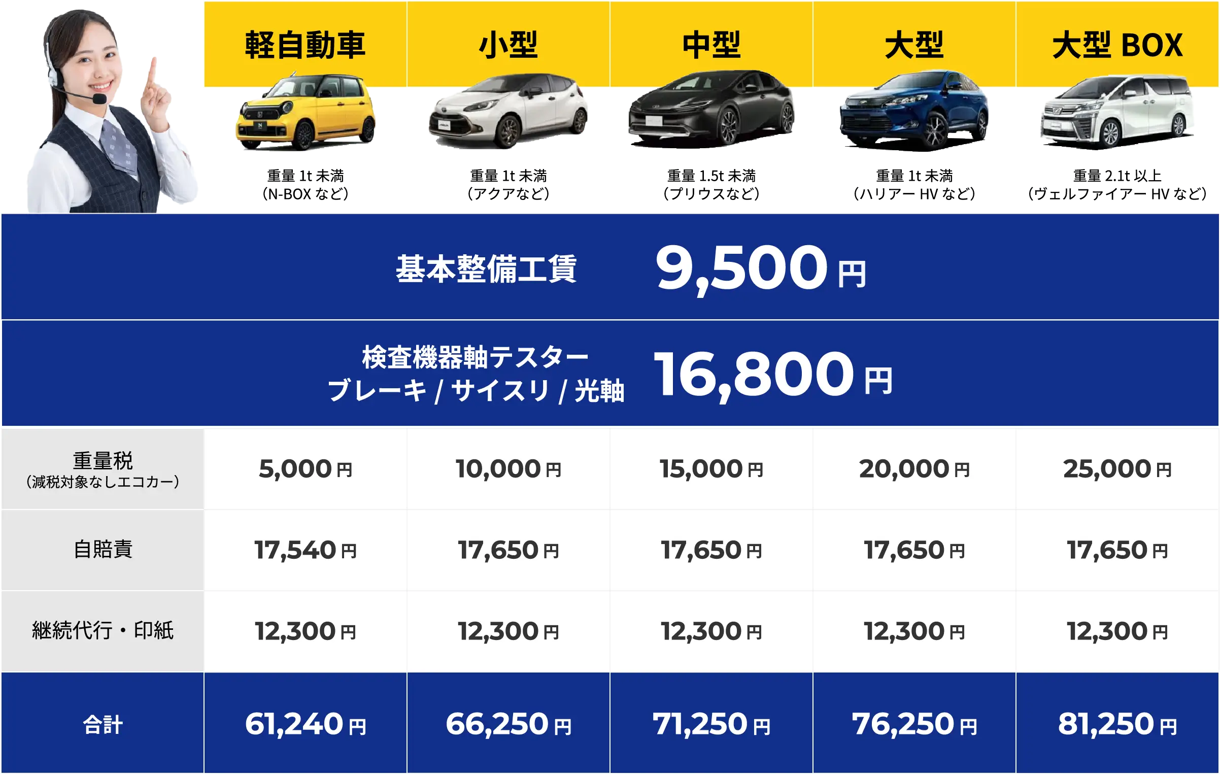 当社車検では、各種割引!また基本工賃に整備代サービスが多数含まれていますので他社の追加工賃方式よりTOTALで安く済みます。交換部品もリビルト品お客様承諾の上でリサイクルパーツ使用も行っております。お見積りお待ちしております。