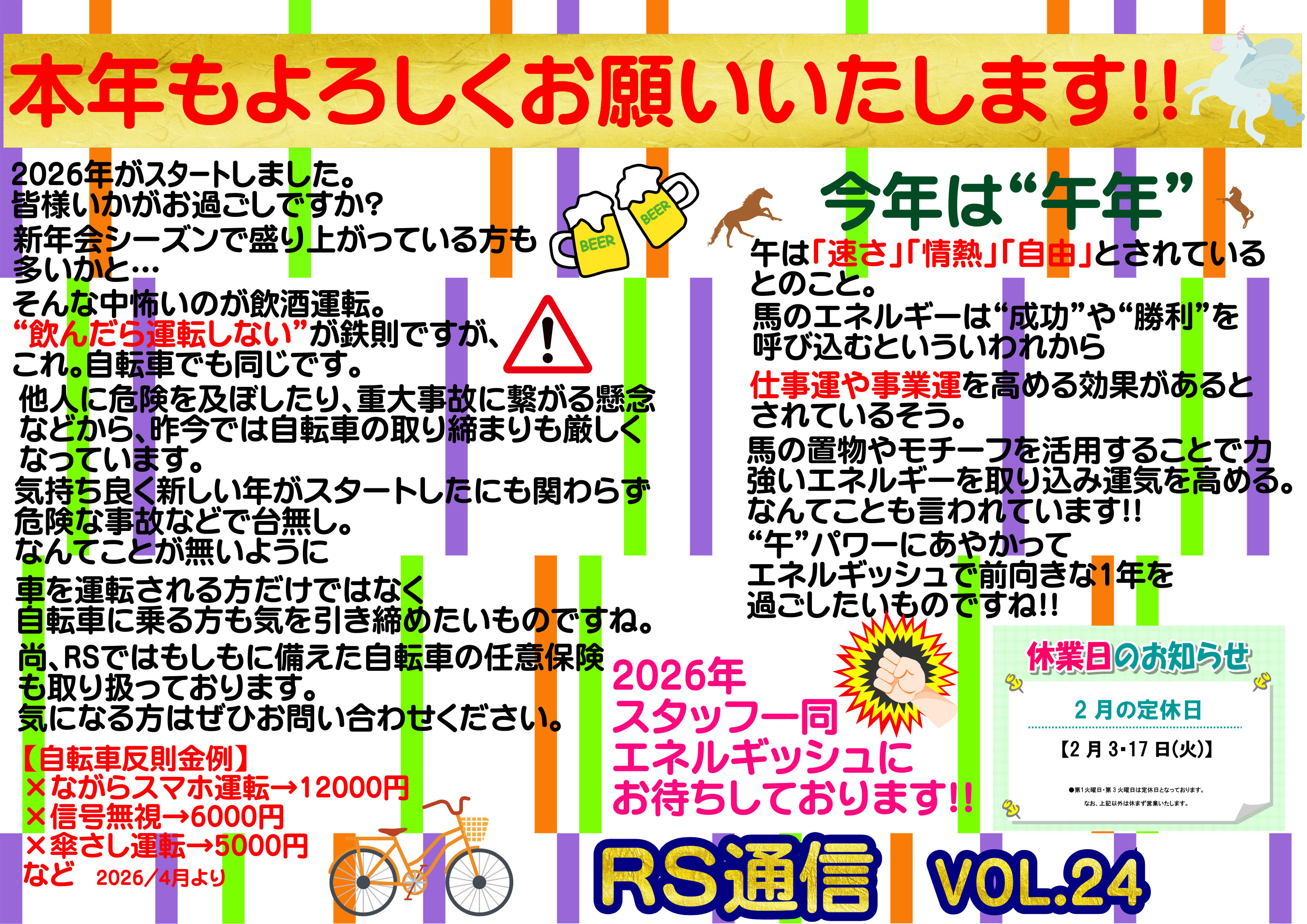 RS新聞VOL24を掲載します。 今月は「意外と怖い”自転車”の違反」 など 是非ご一読ください!