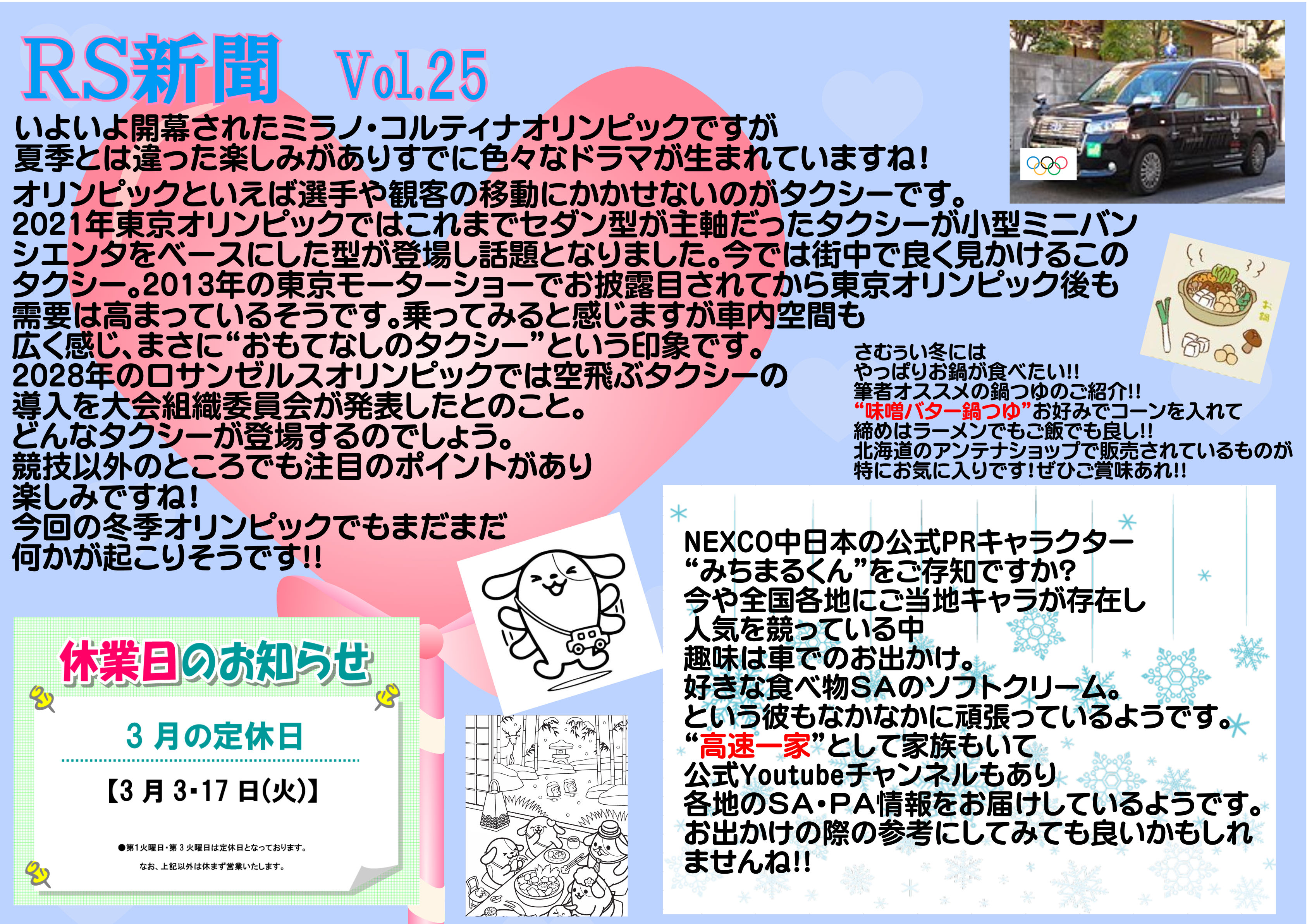 RS新聞VOL25を掲載します 今回はNEXCO中日本 みちまるくん特集など 是非ご一読ください。