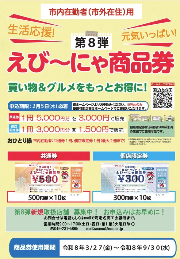 海老名市のプレミアム商品券「えび~にゃ商品券」第8弾を
